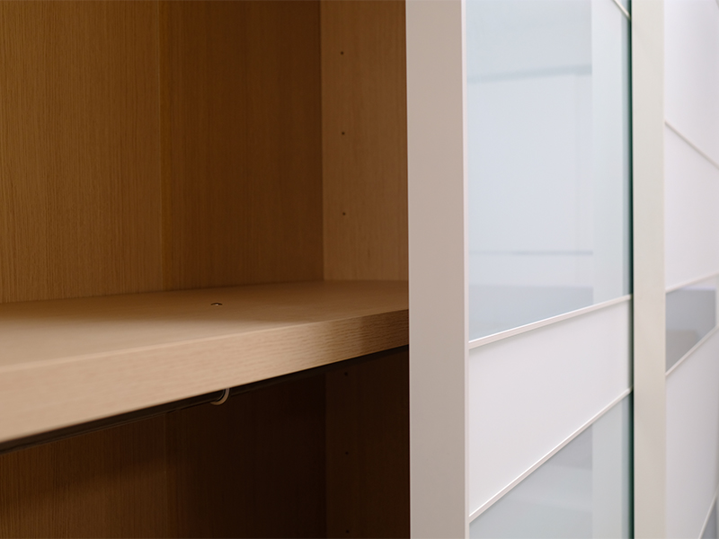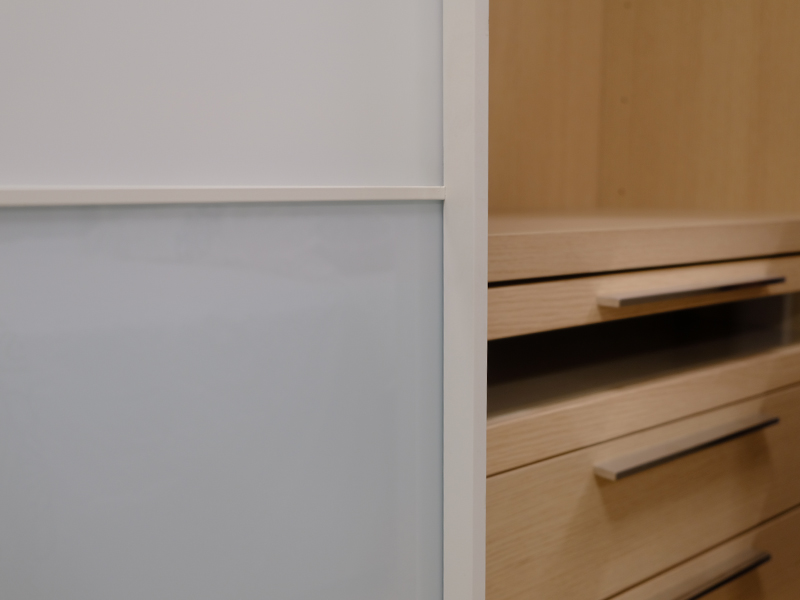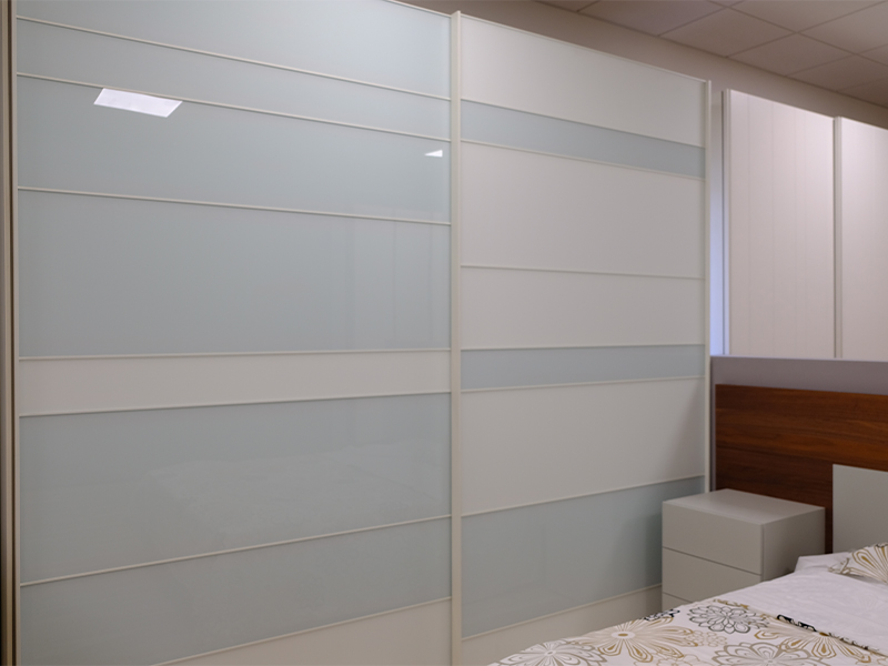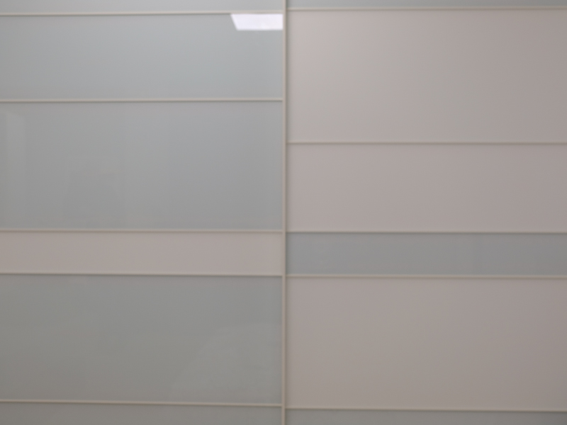 Segmenta di MisuraEmme è caratterizzato dall’accostamento di fasce in vetro acidate e neutre, colorazione bianco.